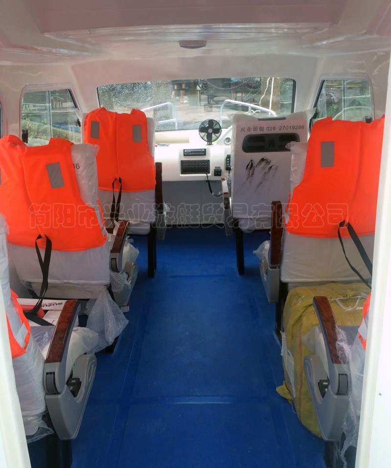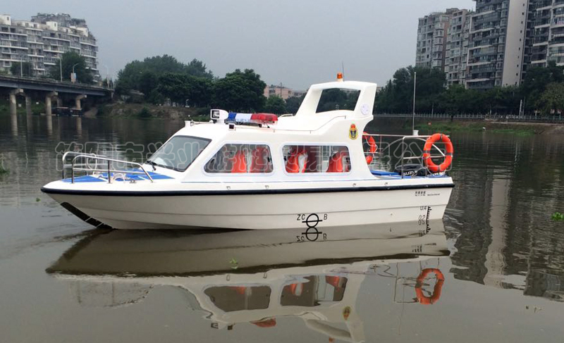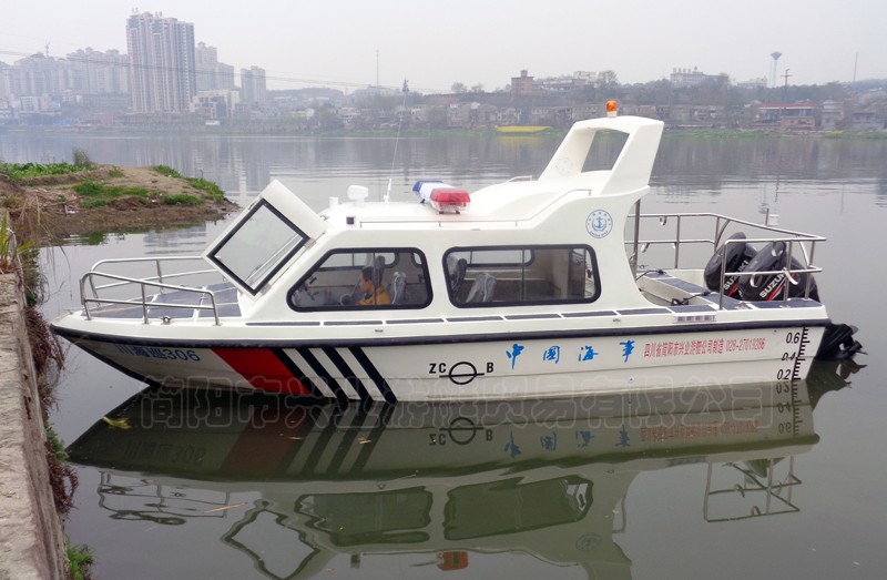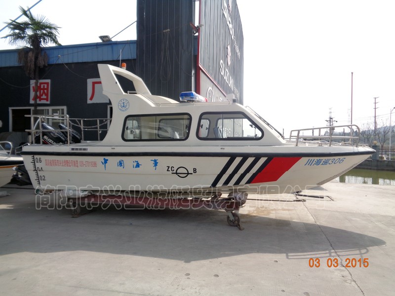 本艇為全玻璃鋼結(jié)構(gòu)高速艇,艇尾艉封板處安裝1-2臺(tái)舷外掛機(jī)或1臺(tái)舷內(nèi)外機(jī)作為推進(jìn)主機(jī),由駕駛臺(tái)方向盤通過(guò)液壓操縱裝置帶動(dòng)機(jī)器舷外艉機(jī)左右擺動(dòng),起到操舵作用;本艇限制于我國(guó)內(nèi)河B級(jí)航區(qū)航段航行。