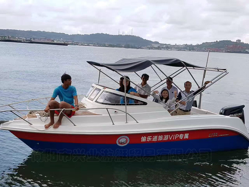 新型鋁合金與玻璃鋼復(fù)合型快艇,重量輕、速度快、穩(wěn)性好。