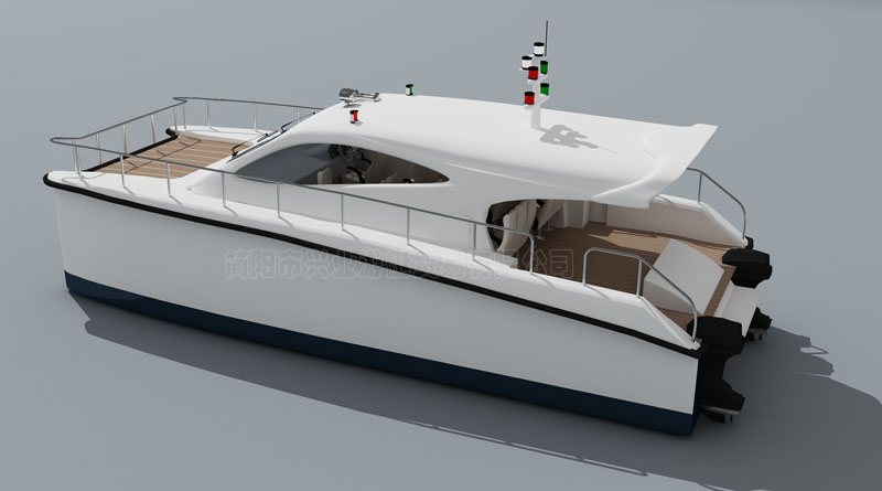 本船外表面用彩色膠衣樹脂覆蓋,光順、光潔,且耐腐蝕,具有質(zhì)輕、輕便,船體強